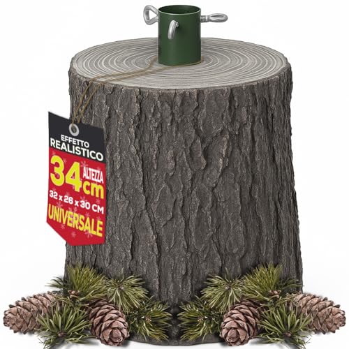 Rendi magico il tuo natale e rivoluziona il decoro di casa tua grazie alla base per alberi di natale BAKAJI!,Costruita in solida e bellissima resina, la base per albero di natale BAKAJI presenta un aggancio da 40 millimetri con ganci di fissaggio che renderanno linnesto universale ed adatto a supportare qualsiasi albero.,Fedele alla realtà e di struttura solida, il troco per alberi di natale è lideale per rendere i tuoi addobbi unici e stupire grandi e piccini.,NB: le pigne e lerba sono solo figurativi, non sono inclusi nella confezione