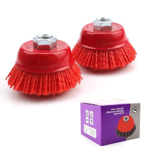DIYCUT 2 Pezzi Spazzola in Nylon, Diametro 63,5 mm Filettatura M14, Spazzola Trapano, per Smerigliatrici Angolari, per Sbavatura, Rimozione Rapida della Ruggine e Rimozione della Vernice
