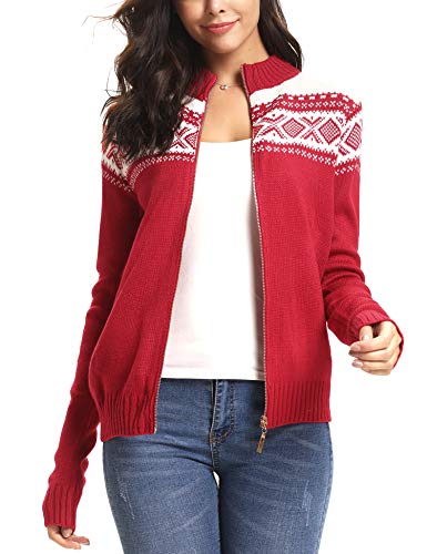 Sykooria Maglione Invernale Donna con Cerniera – Cardigan Caldo in Maglia Morbida, Look Elegante e Festivo per Inverno e Natale, Rosso M