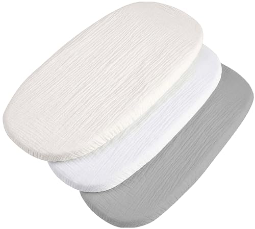 MEDI PARTNERS LENZUOLA LETTINO CULLA 86X40 SET 3 LENZUOLO NAVICELLA NEONATO CARROZZINA CON ANGOLI - 100% COTONE MUSSOLE PASSEGGINO MATERASSO FITTED SHEET COPRIMATERASSO (BEIGE-BIANCO-GRIGIO)